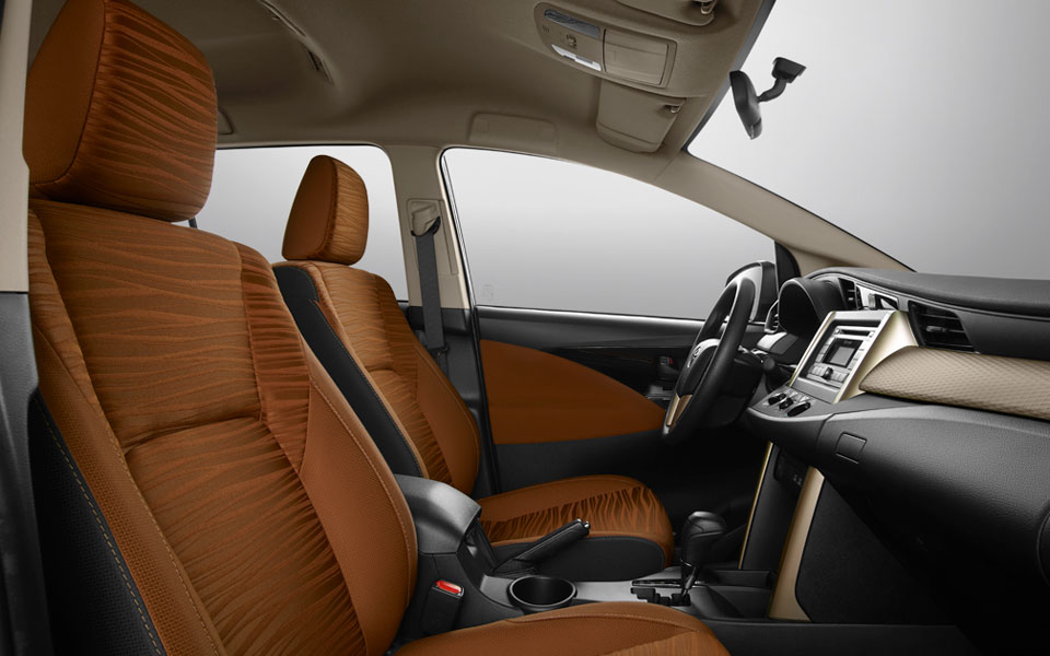 تحتوي مقصورة تويوتا انوفا 2020 على مميزات عديدة تشمل قفل مركزي و نوافذ و مرايات جانبية بتحكم كهربائي، بجانب مقود ثلاثي من الجلد بتطعيمات فضية يدعم تعديل زاوية الميل والارتفاع بجانب مقبض ناقل حركة مغطى بالجلد، بجانب مكيف أمامي وخلفي وثلاجة بين المقاعد الأمامية لتبريد المشروبات.