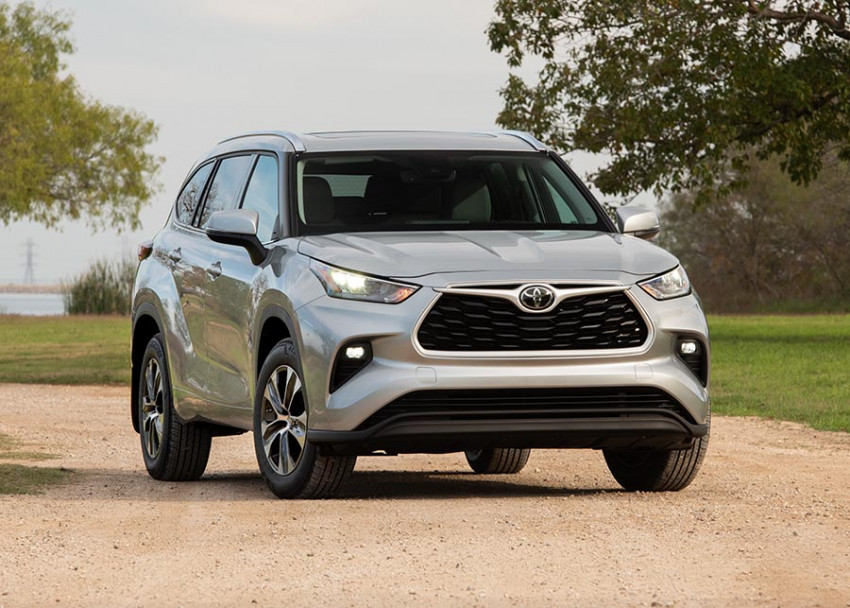 تتمتع اس يو في تويوتا هايلاندر 2021 المتوسطة الحجم بتصميم أكثر هيبة ورُقياً من جيلها السابق، ولكن من دون أن تتخلى عن طابعها العائلي المميز، حيث تقدم شبك أمامي أسود ذو إطار فضي أو كرومي حسب الفئة مع عجلات قياس 20 بوصة.