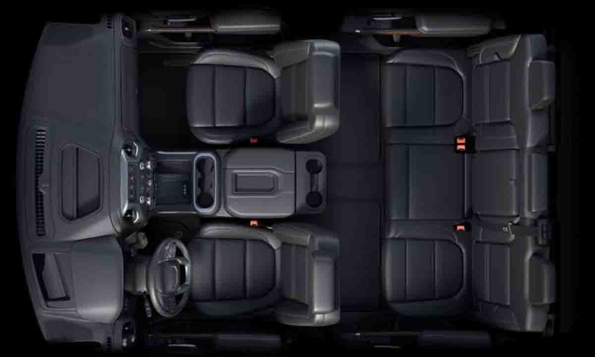 كما توفر السيارة مساحات التخزين الوفيرة تشمل حجرة خلف المقعد الخلفي في نسخ كرو كاب، حيز تخزين مضاء في الكنسولة المركزية مع كنسولة تخزين ملحقة قابلة للقفل، صندوق تخزين كبير سفلي قابل للقفل وصندوق تخزين علوي. وفي الفئة العليا تحصل على أقصى مساحة للرأس وحيز القدمين في فئتها، والمقاعد الخلفية مصممة لتكون أكثر فخامة وراحة، كما المقاعد الأمامية قابلة للتعديل كهربائيا في 10 وضعيات وتضم فتحات تهوية وتدفئة، وتنتشر اللمسات زخرفية من الألومنيوم والكروم والخشب.