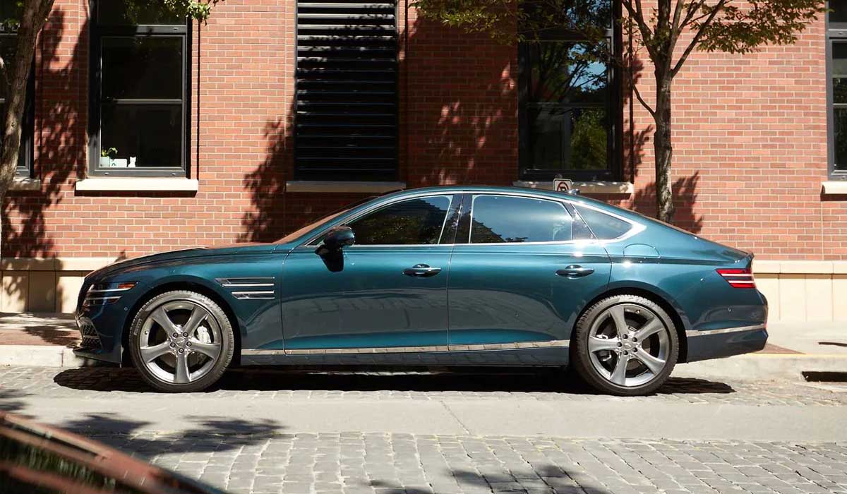تتمتع الطرازات الرياضية بدفع رباعي قياسي، وشاشة تعمل باللمس مقاس 14.5 بوصة تزين لوحة العدادات. وبخلاف ذلك، تظل G80 سيارة سيدان مذهلة بمظهر رشيق وأداء قوي وأمان وتكنولوجيا أعلى. تتميز G80 بشكل رائع، بشبك على شكل مقلاع ورفارف قوية، محاطة بمصابيح أمامية مع شرائط LED. تمتلئ المقصورة بأجواء عصرية، مع طبقات من الخشب وأعمال زاهية تزين اندفاعتها وخياطتها التي تلفت الانتباه إلى الجلود الناعمة.