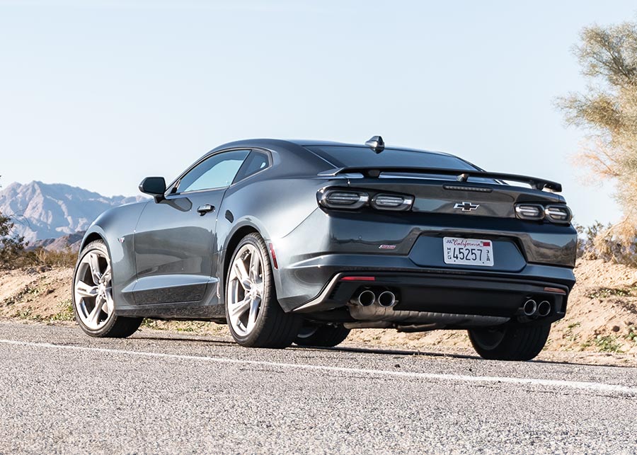 يُجسّد التصميم الخارجي لـ كمارو SS قلب وجوهر الأداء المبهر، فتأتي بعجلات ألومنيوم قياس 20 إنش مع الإطارات الخاصة بفصل الصيف فقط والتي تسير بدون هواء لمسافة محدودة، مع شبك أمامي علوي وسفلي مع إضافة فاصل بينهما بنفس لون الهيكل، ومصابيح خلفية مظللة ومكابس مكابح حمراء أو برتقالية.