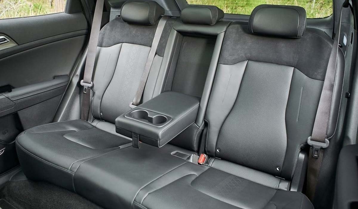 اما من الناحية الخلفية تأتي السيارة بتصميم جديد ايضا، تأتي بمصابيح خلفية LED موصولة ببعضها تحت الزجاج الخلفي، كما ياتي تحت الخط الذي يصل المصابيح ببعضها علامة كيا الجديدة بالحجم الكبير. اما الجهة الاسفل تأتي بمصابيح ضباب ومصد خلفي يأتي من اسفل السيارة صعودا الى اعلى قليلا. اما فيما خص العجلات، فهي مصنوعة من المعدن الخفيف او من الالمنيوم، وتتراوح ما بين 17 الى 19 انش، وتوجد فتحة سقف بانورامية، والمرايا الخارجية كهربائية الضبط والطي مع مؤشرات الانعطاف.