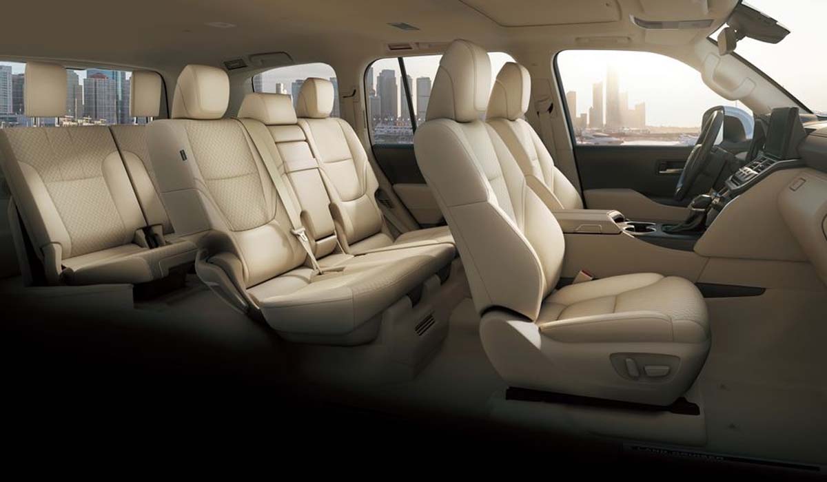 كما وتسع المقصورة 7 ركاب وتأتي بمقاعد من الجلد، المقاعد الامامية تأتي بتحكم كهربائي مع ذاكرة لمقعد السائق، مع تهوية وتدفئة المقاعد الأمامية والخلفية، ومقود مكسو بالجلد والخشب قابل للتعديل كهربائياً مع ذاكرة، ويحتوي على أزرار تحكم، بالإضافة إلى مقبض نقل الحركة مكسو بالجلد، وتخشيب داخلي. وتوجد فتحة سقف والباب الامامي للراكب بتحكم بالقفل المركزي، كما يوجد مسند ذراع خلفي مع حامل أكواب.