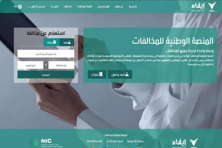 - الدخول إلى الموقع الرسمي للمنصة الوطنية للمخالفات إيفاء