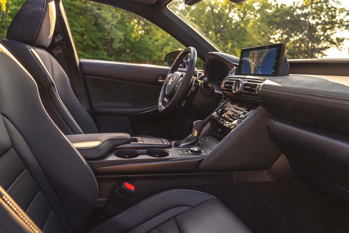 على الرغم من أنها ليست فسيحة أو فاخرة مثل سيارة لكزس ls السيدان الرائدة في لكزس، إلا أن is المدمجة لا تزال تقدم تجربة متميزة تعد المقاعد الأمامية الكهربائية، والتحكم التلقائي في المناخ ثنائي المنطقة، والتشغيل بكبسة زر، كلها ميزات قياسية، في حين أن فتحة السقف الكهربائية وتنجيد الجلد اختيارية على الرغم من أن التغييرات في المقصورة طفيفة، إلا أن العين الفطنة ستلاحظ نقل حاملات الأكواب، وفتحات التهوية الدائرية بالقرب من ألواح الأبواب، ونظام المعلومات والترفيه الذي تم نقله بالقرب من حافة لوحة القيادة.
