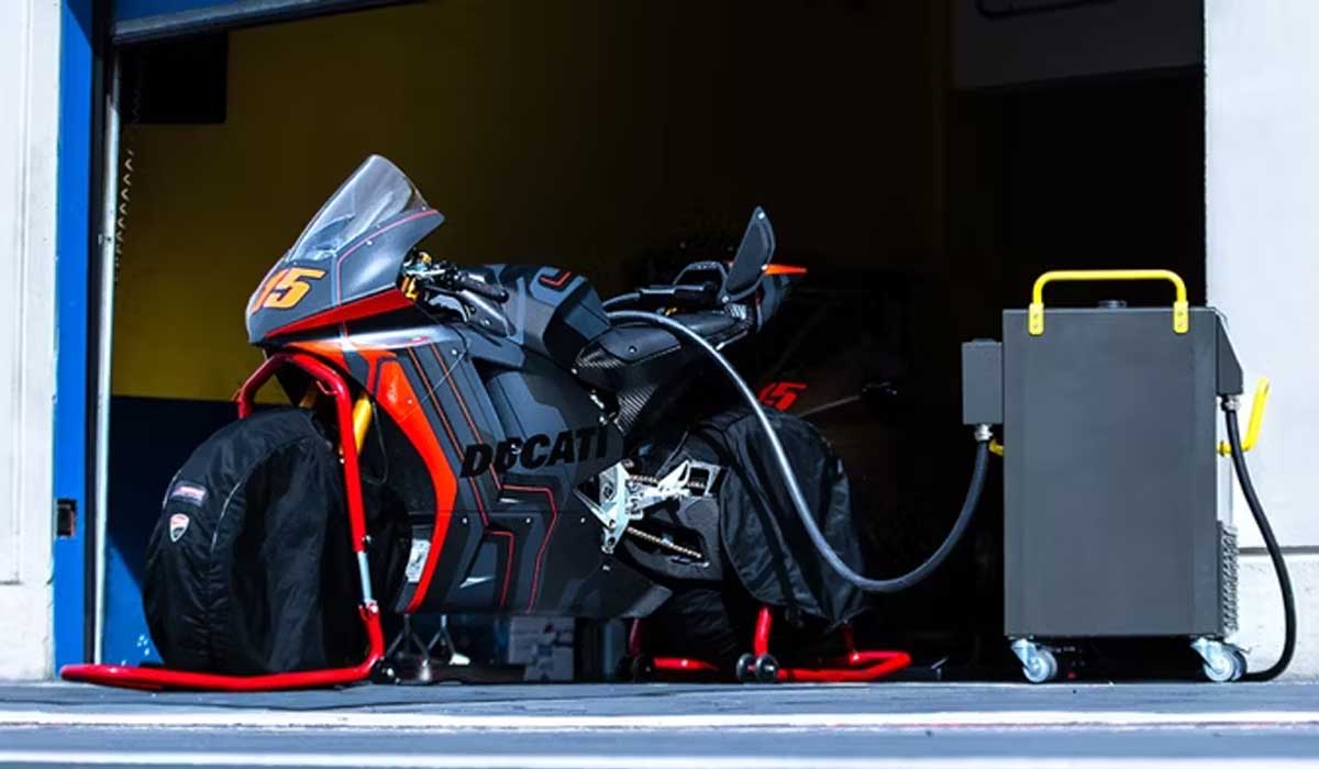 يتم شحن دوكاتي الكهربائية بما يصل إلى 20 كيلوواط عبر وصلة مدمجة في المؤخرة. كل هذه الامور متعلقة بشكل اساسي في نظام التبريد. الاستخدام الكامل على مضمار السباق هو حمل حراري هائل للبطارية. لذلك، كان على دراجة Energica MotoE الحالية أن تبرد قليلاً في مواقف الصيانة قبل أن يتم شحنها. طورت دوكاتي نظام سائل ثنائي الدائرة مزدوجا متطورا وفعالا بشكل خاص. يجب أن يسمح ذلك بشحن الدراجة فورًا بعد العودة إلى ممر الصيانة، وقت الشحن من 45 دقيقة إلى 80 في المائة.
