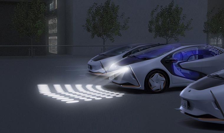 وتأتي تويوتا LQ بمصابيح أمامية مكونة من مليون مرآة صغيرة مزودة بنظام يسمح بعرض أرقام مختلفة على الطريق أمام السيارة، كي تتواصل بذلك مع المشاة أمامها ومع الركاب داخلها.