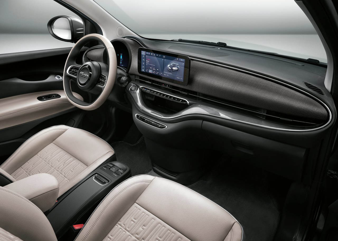 باختصار، تقدم سيارة 500 تكاملاً سهلاً مع الهواتف الذكية مع شاشة تعمل باللمس عالية الوضوح قياس 10.28 بوصة مع شكل أفقي يتناسب تماماً مع شكل اللوحة الأمامية ومع انسياب خطوطها.