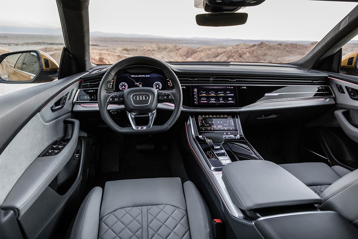 الكوبيه الرياضية الجديدة أوسع وأقصر وأخفض من طراز Q7 الشقيق، مع مقصورة داخلية فسيحة تتفوق على منافساتها في هذه الفئة من ناحية الطول الداخلي والارتفاع. وبفضل مقصورة داخلية سخية الأبعاد وحجرة تخزين مرنة، إلى جانب أنظمة التشغيل والمساعدة الذكية، أصبحت Audi Q8 رفيقًا مثاليًا العمل والترفيه، ويمكن لسيارة الكوبيه الرياضية متعددة الاستعمالات أن تواصل رحلتها حين ينتهي الطريق المعبد بكل ثقة بفضل تقنية quattro للدفع الرباعي الدائم والارتفاع البالغ 254 ميلليمتر عن الأرض.