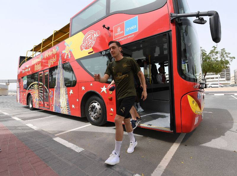 وكان فريق أرسنال قد وصل إلى دبي بكامل نجومه يوم الخميس الماضي على إحدى طائرات الإمارات A380، وتحمل الطائرة على هيكلها الخارجي ملصقاً جديداً يظهر فيه عدد من نجوم الفريق الأول.