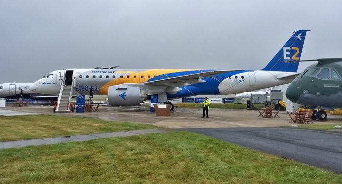 استعرضت شركة امبراير البرازيلية، التي تعد ثالث أكبر صانع طائرات في العالم، طائرة E190-E2 المخصصة للركاب، والتي تحمل 114 مقعد، حيث أنها الأحدث في العالم بعد أن بدأ استخدامها في أبريل من العام الماضي مع مدى طيران قدره 5,000 كم لمساعدة مشغلي الطائرات في زيادة خطوط الطيران الداخلية وبين المدن القريبة.
