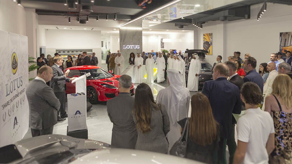 تؤكد شركة لوتس للسيارات عن إلتزامها اتجاه دولة الإمارات العربية المتحدة، مع الإفتتاح الرسمي لصالة عرض لوتس الجديدة كلياً في إمارة دبي، وتأتي منشأة لوتس الجديدة على شارع الشيخ زايد في دبي نتيجة للتعاون مع شركة أداماس موتورز، لتوفر لعملاء لوتس الحاليين والجدد فرصة لإكتشاف العلامة التجارية الشهيرة في قلب إمارة دبي.
