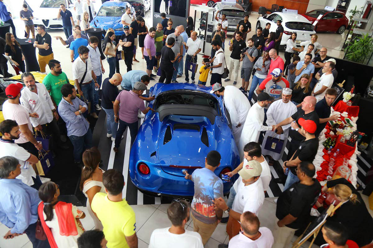 وشهدت هذه الفعالية مشاركة أكثر من 60 مركبة من طراز ألفا روميو يمتلكها أعضاء من تجمع بلانيت ألفا في صالة عرض قرقاش ألفا روميو بشارع الشيخ زايد لحضور إزاحة الستار عن سيارة 4 سي سبايدر إيطاليا التي تم عرضها إلى جانب الطراز الإنتاجي القياسي 4 سي سبايدر 4C Spider.