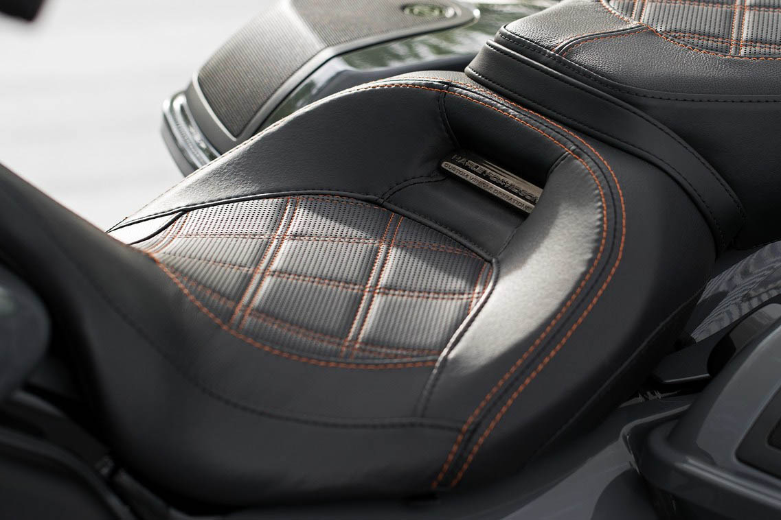 تأتي CVO رود جلايد بمساند أرجل كبيرة لكل من قائد الدراجة والراكب الخلفي بشكل قياسي، مع أوتاد أمامية تسمح لقائد الدراجة بتمديد أرجله عند القيادة على الطرقات السريعة لمسافات طويلة.