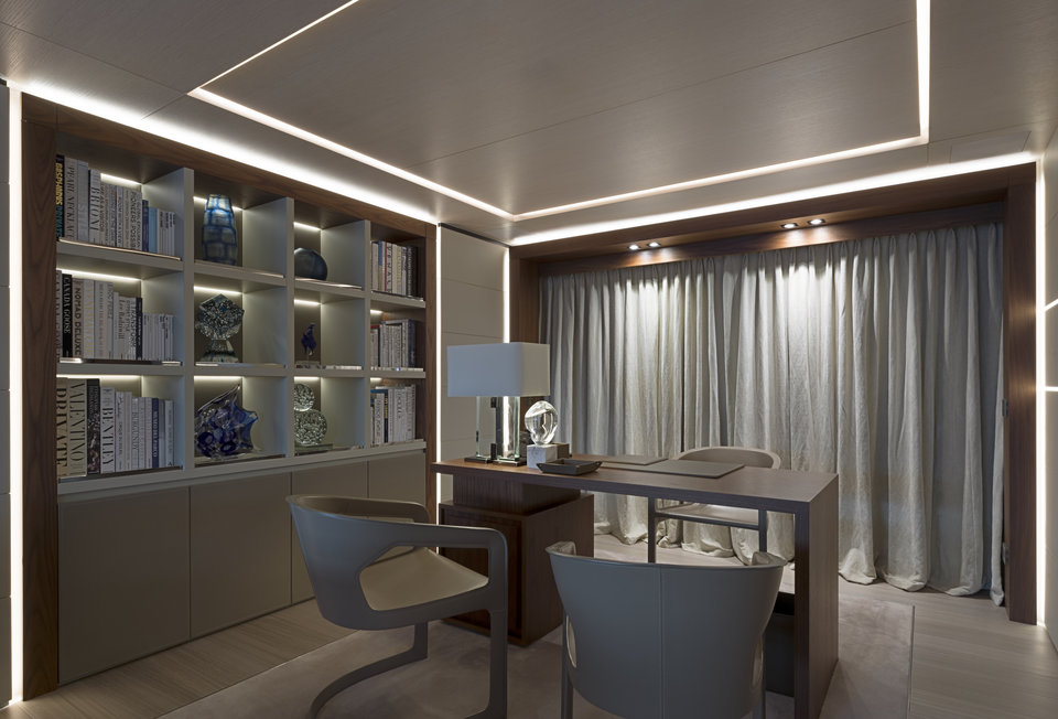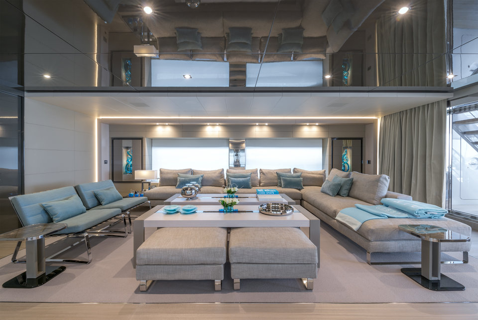 على سطح اليخت يقع نادي شاطئي يطل مباشرة على المحيط، صالة ترفيه بطول 16 متر وحمام سباحة.