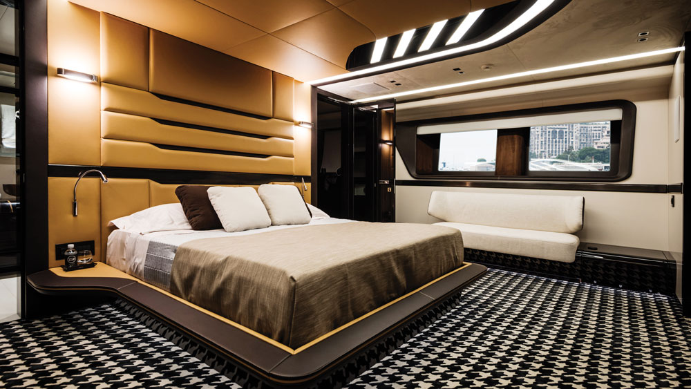 يقدم يخت Dominator Ilumen 28 مساحات وخدمات ابتكارية عالية الجودة تجعله يخت أكبر بكثير مما هو عليه، خاصة مع الجناح الرئيسي متعدد المستويات الذي يضم سقف مفتوح وتراس خاص مع الكثير من الخامات الغالية كالحرير والجلد الطبيعي وخشب الأبنوس.