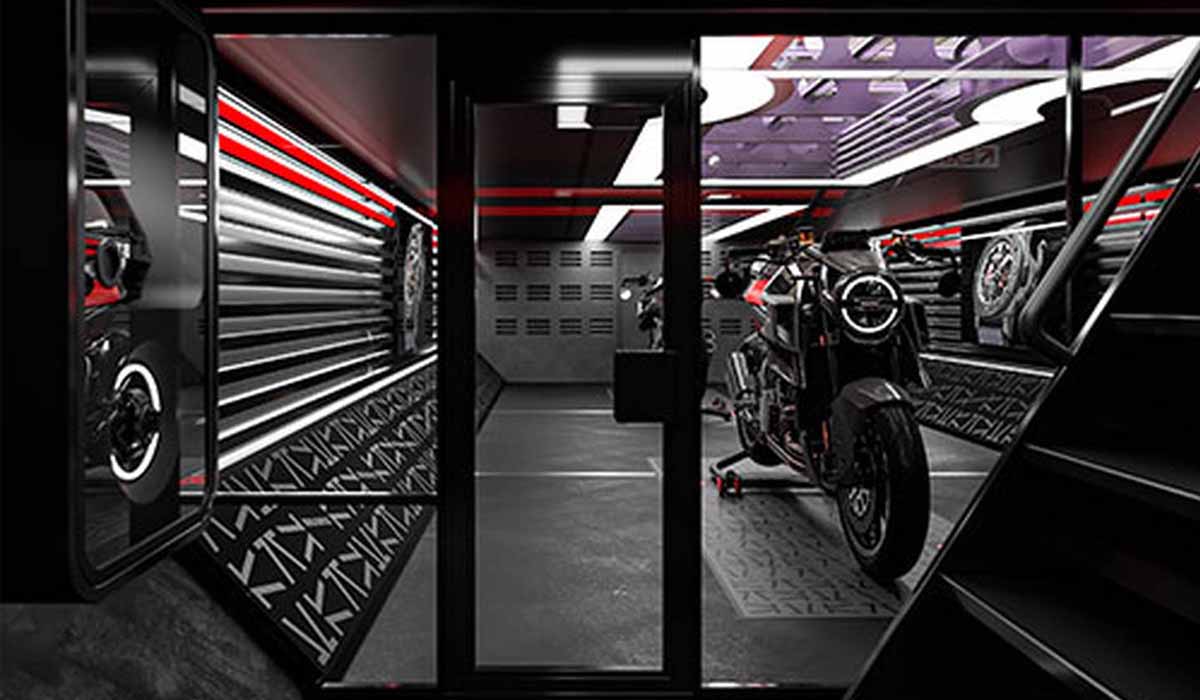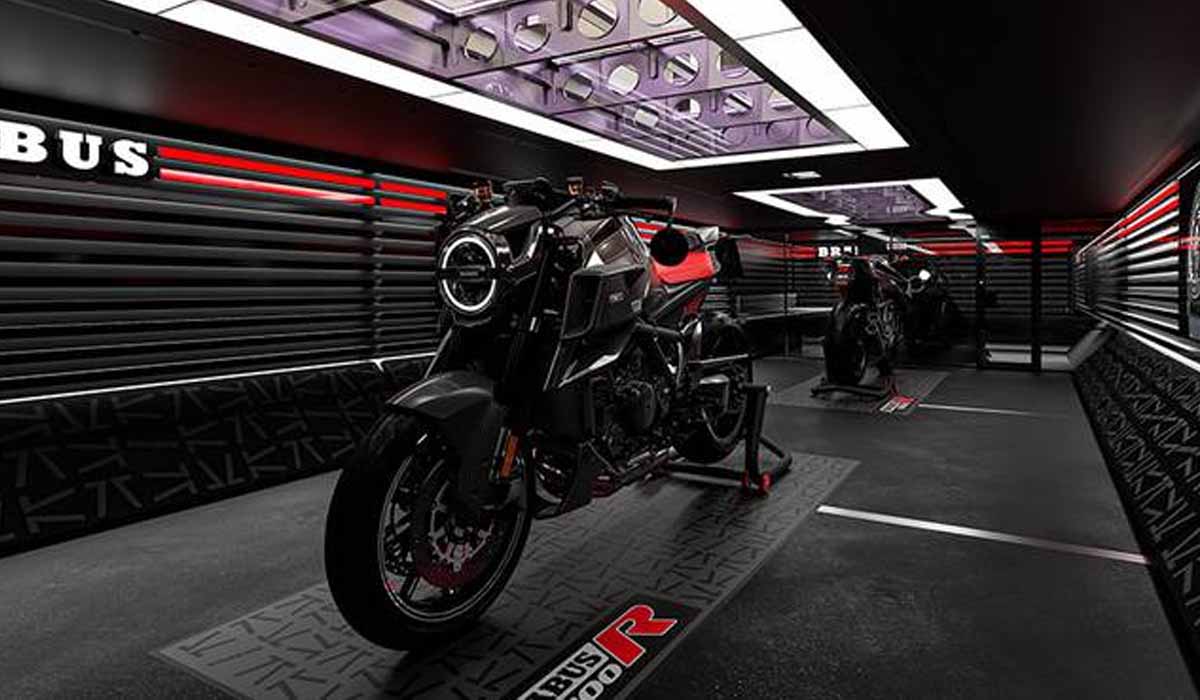 يتم تقديم Brabus 1300R بشكل جذاب داخل الصالة، أول دراجة نارية على الإطلاق من انتاج شركة برابوس. ظهرت الدراجة النارية ذات الإصدار المحدود لأول مرة منذ بضعة أشهر وتم إنشاؤها بالتعاون مع الشركة النمساوية الرائدة KTM. يعتمد Hypernaked على KTM 1290 Super Duke R Evo ويبلغ سعره حوالي 47000 دولار.