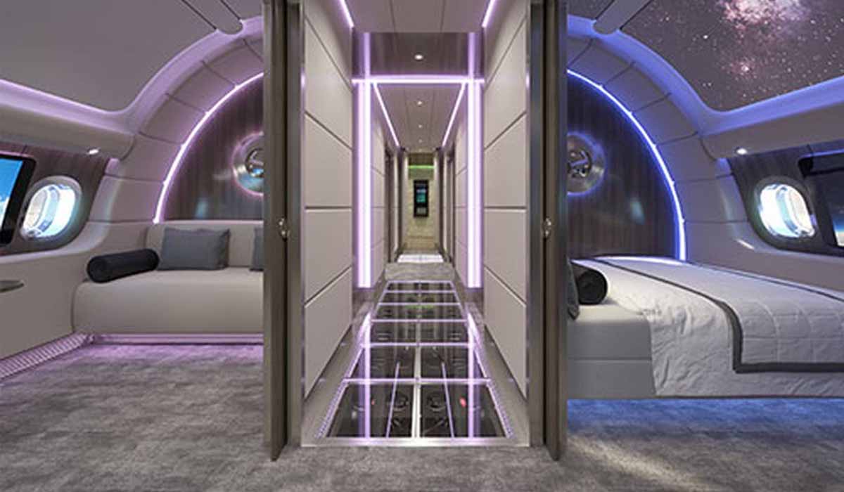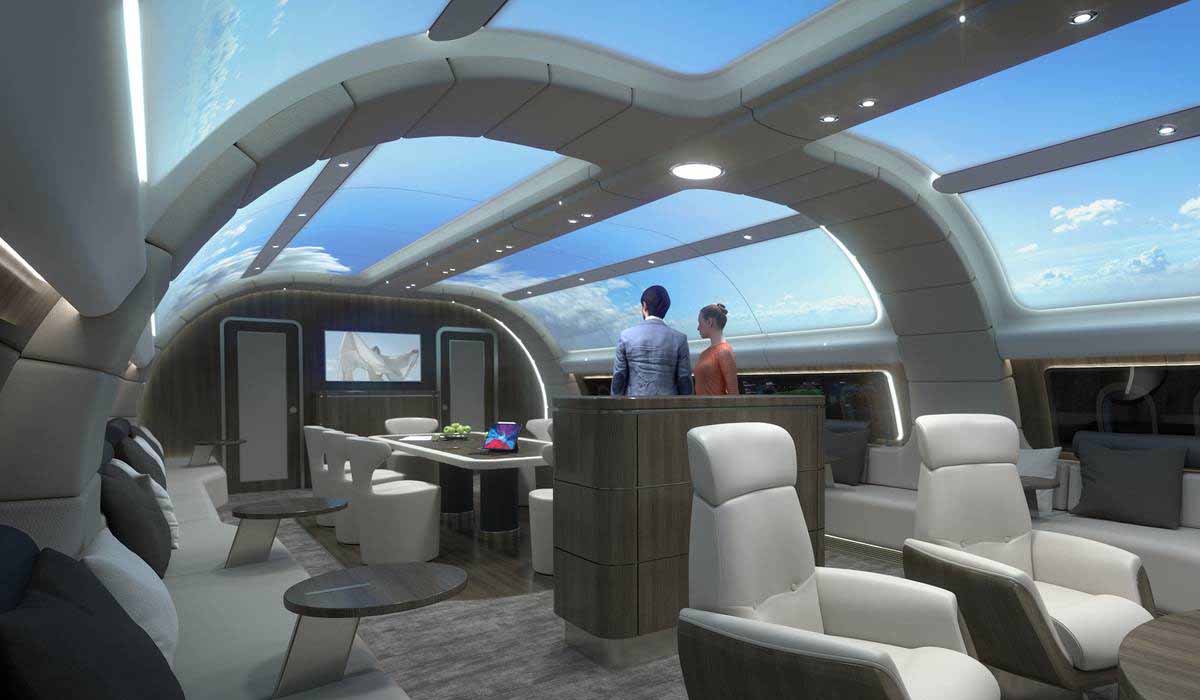 الهدف من المفهوم هو تغيير وظيفة الطائرة النفاثة لكبار الشخصيات، والتي تقتصر عادةً على الطيران من وجهة إلى أخرى. تهدف المقصورة إلى أن تكون بمثابة فندق خمس نجوم فردي ومعسكر أساسي لمالك الطائرة الخاصة. يشتمل التصميم على بار، وصالة فسيحة، وثلاثة غرف نوم مع أسرّة مزدوجة، وصالة ألعاب رياضية، وغرفة مستشفى للطوارئ، ومراحيض لا حصر لعددها، ومع ذلك، يمكن تخصيص التصميم ووسائل الراحة وفقًا لمتطلبات العميل.