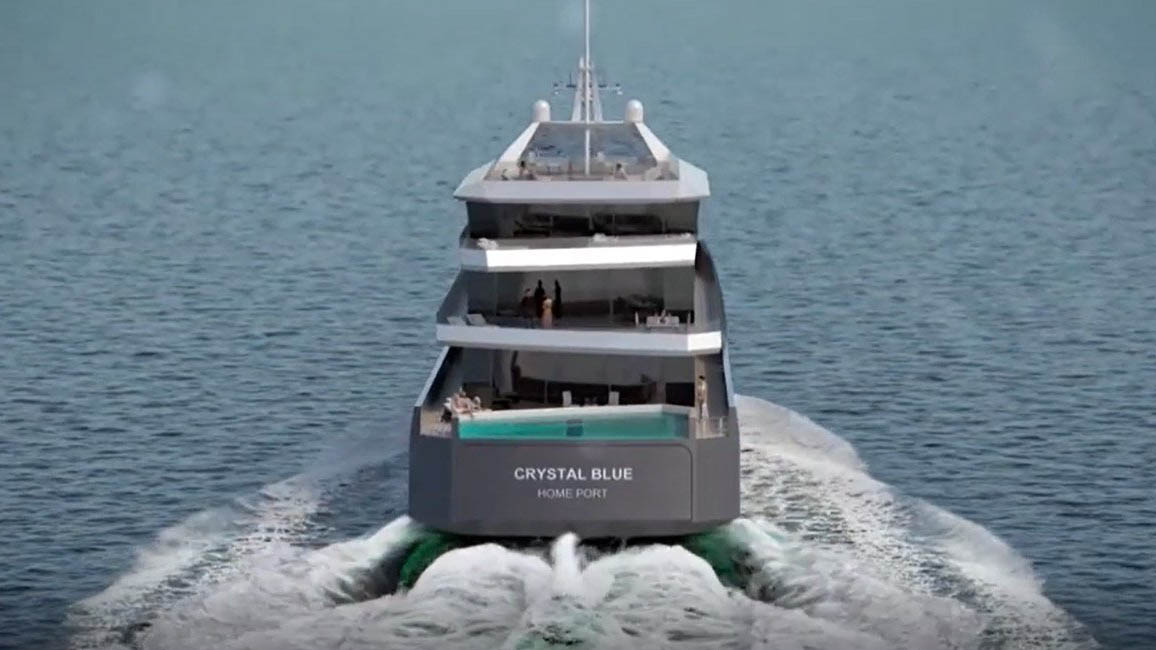حيث كشفت الصانعة البريطانية عن سوبر يخت كريستال بلو (Crystal Blue) بتصميم مبهر بطول 42 متر يتسع لما يزيد عن 12 راكب، وطاقم مؤلف من 12 عضو، وطائرة هيليكوبتر وألعاب مائية.
