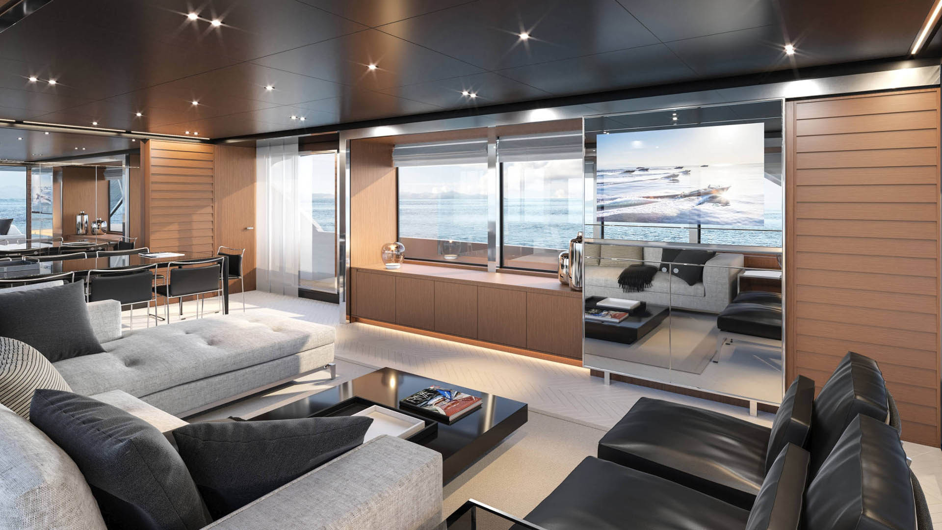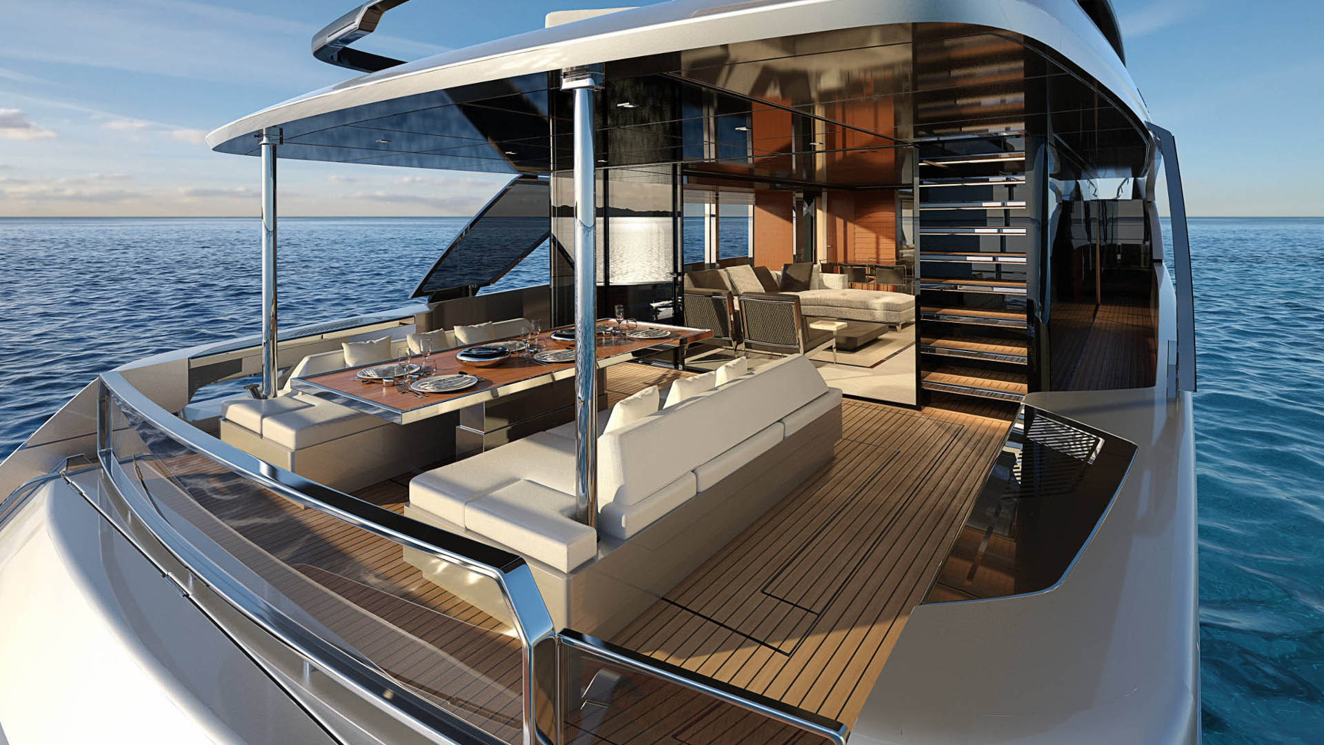 مزايا ريفا 90 أرجو (Riva 90 Argo) متعددة، بينها هيكل عريض، حمام شمسي، ومرآب كافٍ لاحتواء دراجة مائية وقارب بالوقت نفسه.