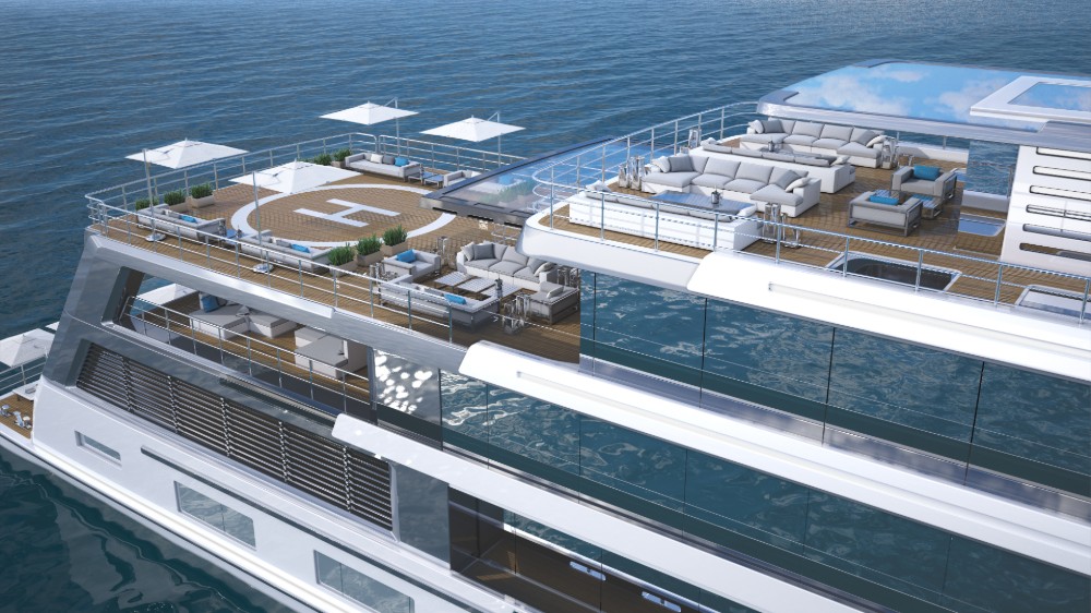 هذا ويتمتع السوبريخت بمهبط طائرات هيليكوبتر وغرفة نادي رياضي مع صالة كرة سلة وسبا ومراكز تجميل ومساحات ركن سيارات واثنين من الغواصات الصغيرة، حيث من المنتظر تحويل هذا اليخت النموذجي لحقيقة بواسطة شركة Dörries Yachts الألمانية التي ستتولى بناؤه في المستقبل القريب.