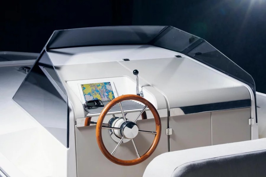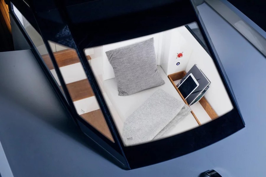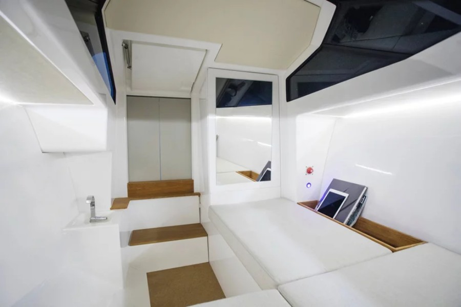 تمتاز المقصورة بمساحتها الشاسعة التي تبعث فيك الراحة مع تقنيات متطورة يتضمنها إمكانية التحكم بالقارب عبر شاشة لمسية وتطبيق آيباد.