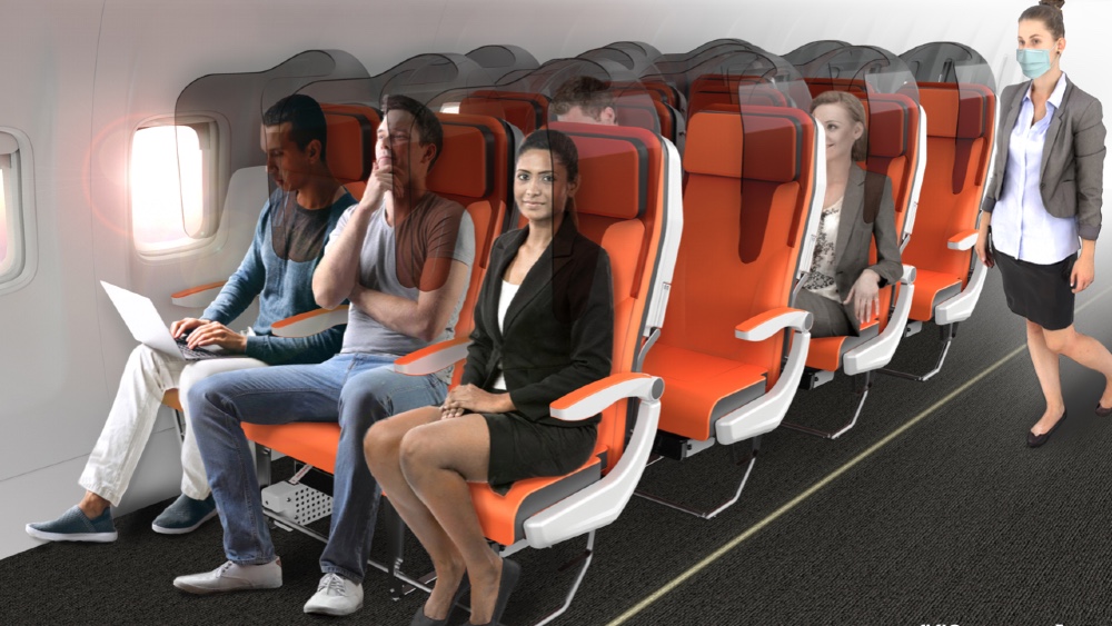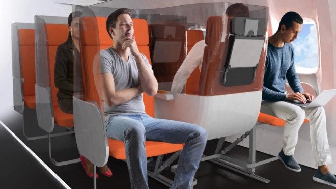 في الوقت ذاته، تقترح شركة Factory Design البريطانية للتصميم استخدام المقعد الوسطي لوضع درع بلاستيكي كبير عازل بين الركاب، وهو يأتي بعد قيام عدة شركات طيران بحجب المقعد الوسطي لمزيد من الأمان.
