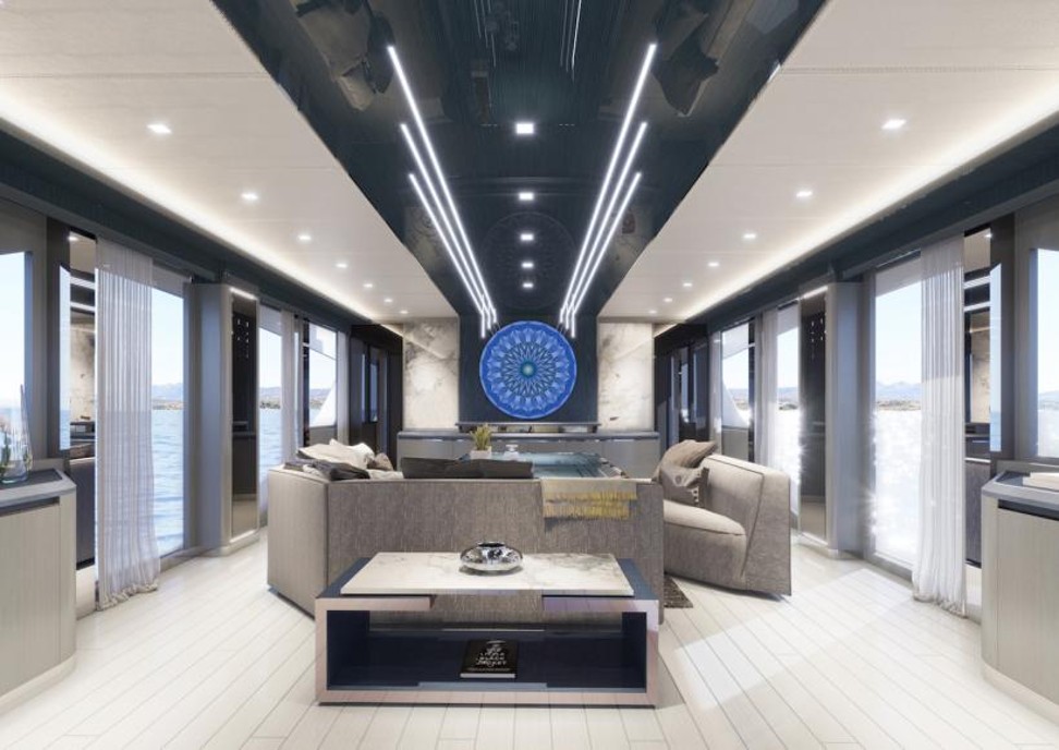 اليخوت الفاخرة تتميز بتصاميم داخلية مبهرة، إلا أن أجملها يأتي في يخت Cadet V من علامة دومينايتور والذي يتمتع بداخلية باهظة الثمن مطعّمة بقطع من كريستال سواروفسكي المبهر.