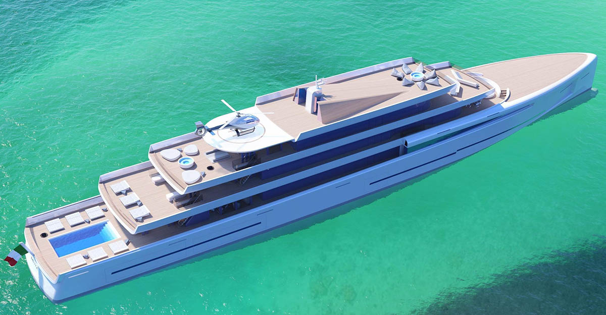 ميراج هو ثمرة التعاون بين شركتي Fincantieri الإيطالية وVan Geest Designs الهولندية لصناعة اليخوت وتصميمها.