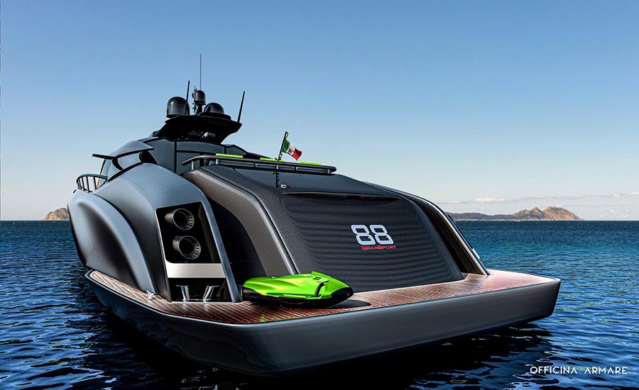 نتيجة لذلك، كشفت الشركة الإيطالية مؤخراً عن يخت نموذجي فاخر بإسم A88 Gransport، والذي يعد بمثابة النسخة البحرية من لامبورجيني هوراكان ايفو سبايدر.