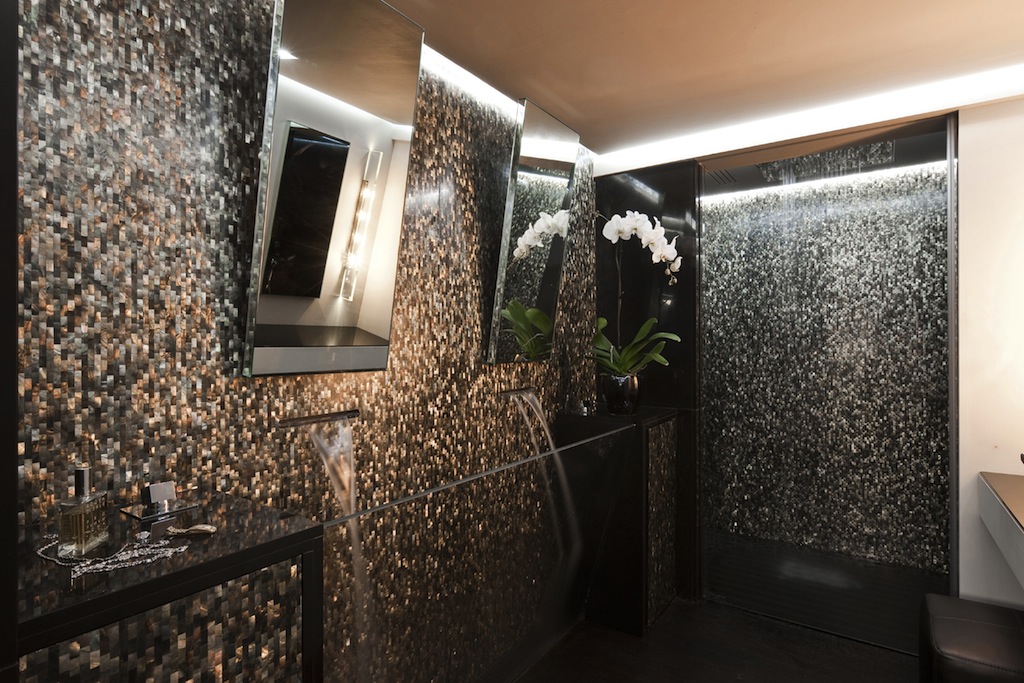 أما في الداخل، فنجد أن مقصورة اليخت قد تم تصميمها بواسطة ماريو غاسو، فعند النزول أسفل السطح المكون من خشب الساج ومقاعد بيضاء أنيقة، نجد مقصورة سفلية تليق بفنادق بوتيك.