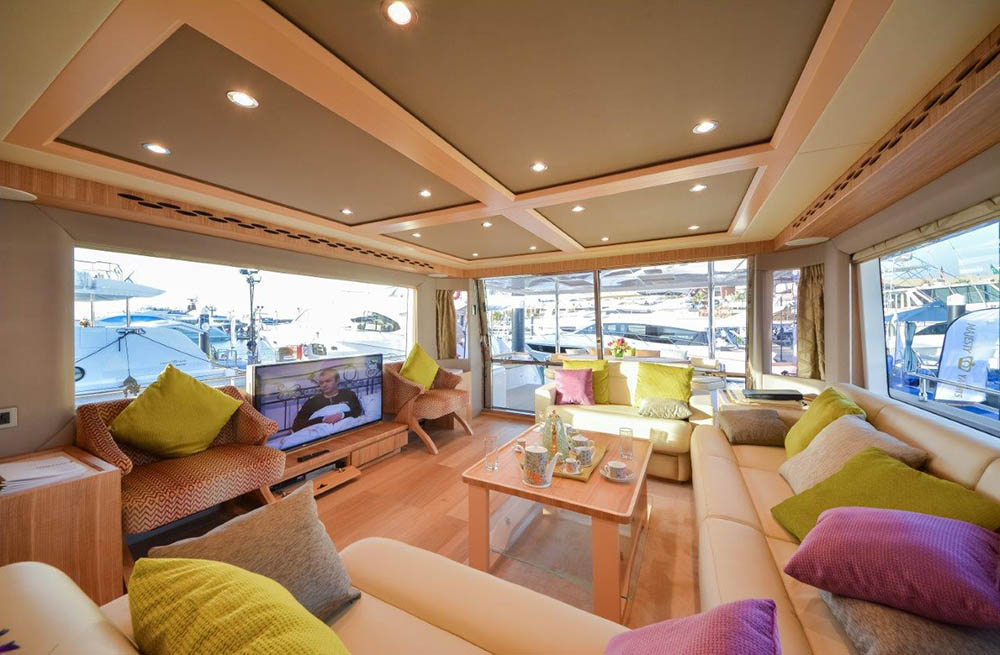 تشمل مزايا اليخت ثلاث غرف رحبة للضيوف ومقصورتين للطاقم، وصالة معيشة مجهزة بالكاملة، إضافة إلى أحدث تقنيات وخيارات الترفيه.