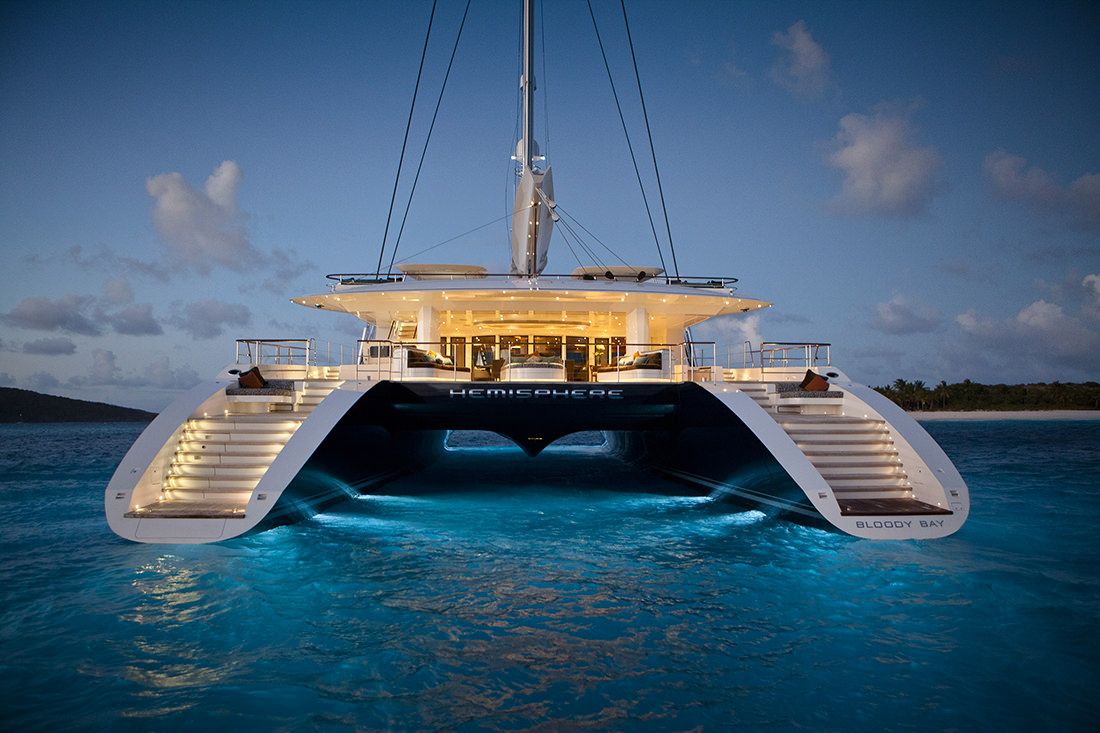 يأتي قطمران ابحار هيميسفير، الذي يعني اسمه نصف كرة، بطول 44.2 متر، حيث يتاح تأجيره في جزر تونجا، فيمنحه تصميمه حضور مهيب في مختلف البحار والمحيطات.