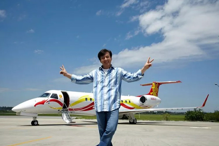 حينما يكون جاكي تشان بعيداً عن أضواء الكاميرات، يفضل دائماً استخدام طائرته الخاصة التي تحمل رسومات تنين عليها للتنقل كما يريد، حيث تم تخصيصها كي تعبر عن جذوره الصينية العميقة، مع خطوط حمراء وصفراء تغطي كامل هيكلها الخارجي، في حين يحمل الذيل شعاره الخاص، ونظراً لمدى إعجابه بالطائرة البالغ كلفتها 30 مليون دولار، قرر لاحقاً أن يصبح سفيراً لعلامة امبراير.