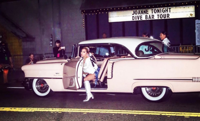 بعد إطلاق البوم Joanne في عام 2016، عملت ليدي جاجا على القيام بجولة للترويج للألبوم الجديد، حيث ظهرت خلال تلك الجولة في سيارة كاديلاك دي فيل كوبيه 1955 ذات اللون الزهري، والتي كانت ملك الفيس بريسلي، حيث قامت جاجا ببيعها لاحقاً.