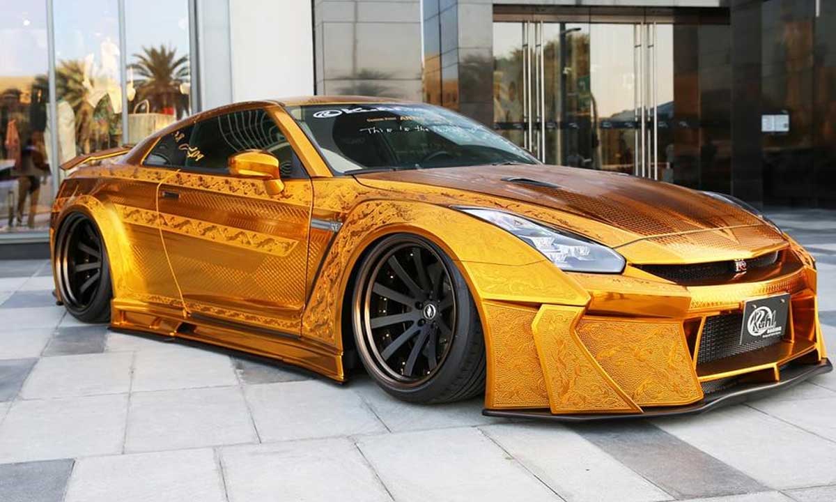 سيارة نيسان جي تي ار GTR، ذات محرك V6 تيربو تصل سرعتها الى 330 كم/س، سعرها حوالي 210 الف دولار، وهي ذات لون مميز بطلب خاص من عبيد بالرشيد.