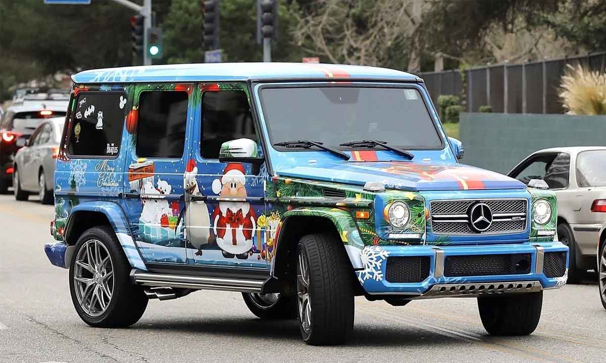 النجم الكندي الشهير جاستن بيبر، الذي يتميز بقاعدة جماهرية كبيرة على مستوى العالم اجمع، قرر الاحتفال بعيد الميلاد على طريقته الخاصة، بحيث قام بوضع ملصقات خاصة بعيد الميلاد على سيارته، مرسيدس جي كلاس، حيث حول هذا الاس يو في المميز الى زينة لعيد الميلاد.