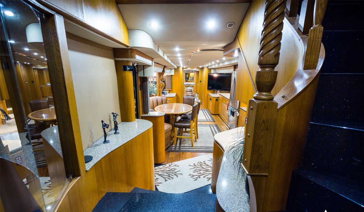 إنها عربة سكن متنقلة ضخمة، عندما تم الكشف عنها لأول مرة، كانت مثالاً للأناقة والرفاهية. اليوم، يبدو الأمر أكثر من مجرد كونه قديمًا بعض الشيء. لكنه لا يزال واحدًا من أكثر البيوت المتنقلة إثارة للإعجاب على الإطلاق، سواء كان مملوكا للمشاهير أم لا.