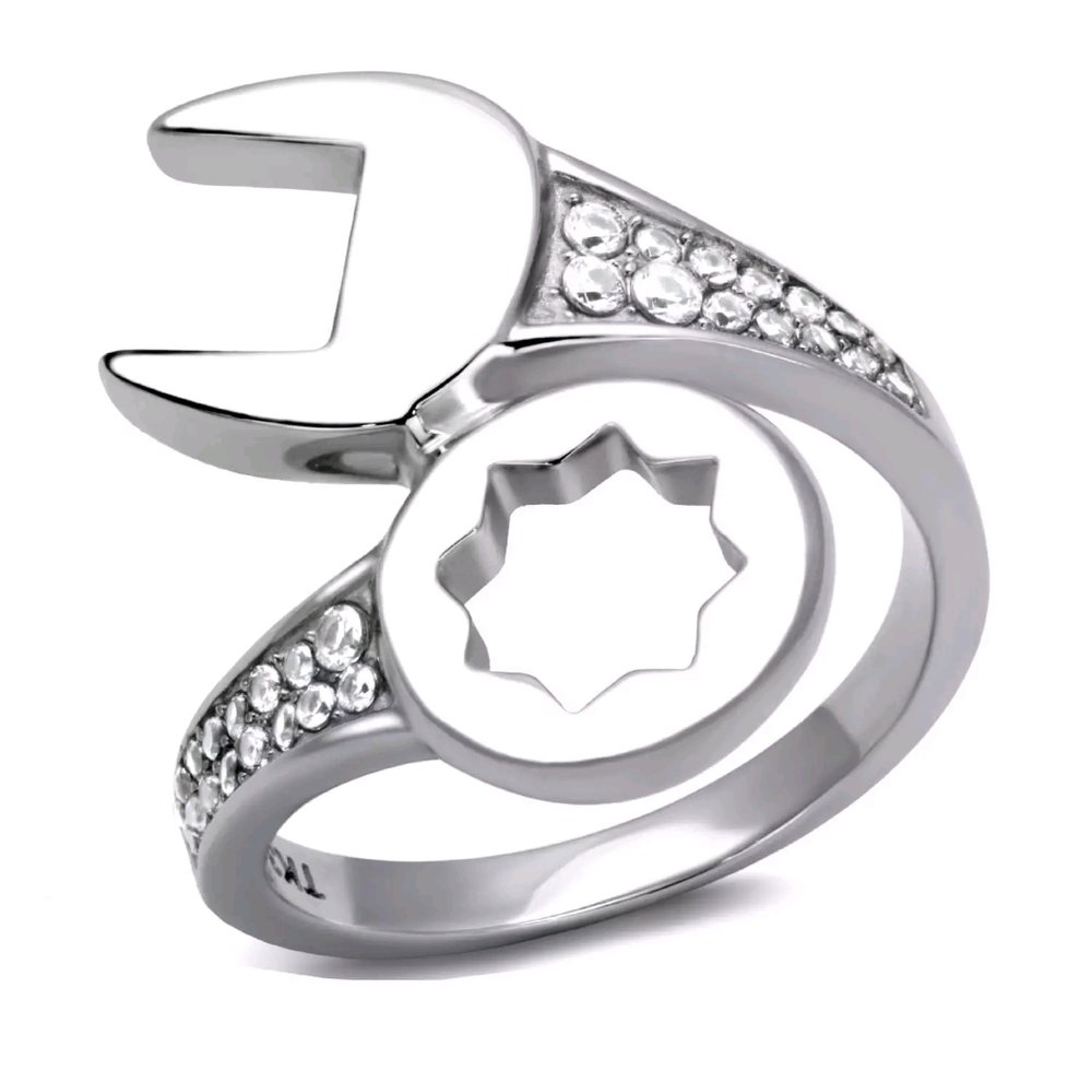 قطعة إكسسوار أخرى تجمع بشكل متناغم تماما بين الرقة والتألق وبين القوة والقدرة على إتمام المهام الصعبة، خاتم فضي يحمل كريستالات لامعة تمت صياغته على شكل مفتاح ربط ملفوف حول الإصبع يمكنه أن يتماشى مع أزياء الصيف الحرة ويبرز جانبك الأنيق الهادئ جنبا إلى جنب مع جانبك الشغوف والجريء.