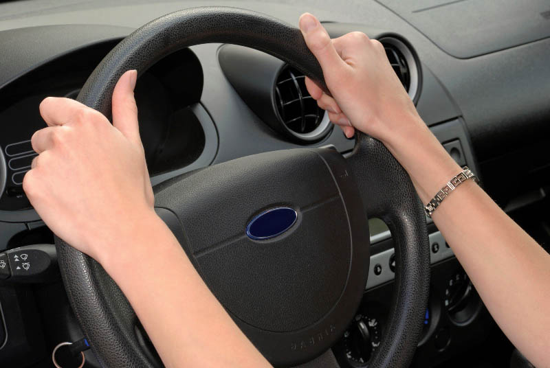 تساعدكِ عجلة القيادة على تغيير الاتجاه عبر تحويل السيارة يميناً ويساراً، ومن المهم أن تبقي يديك على المقود طوال الوقت في حالة حدوث أي موقف غير متوقع كي تستطيعي التحكم بشكل أفضل، فيكون أفضل وضع لذلك هو عبر الوضع اليدين في نفس اتجاه عقارب الساعة عند رقمي 2 و10 مثل الصورة بالأعلى، حيث لا يجب رفع اليد الأخرى عن عجلة القيادة سوى أثناء تغيير السرعة أو ضغط أحد الأزرار بسرعة.