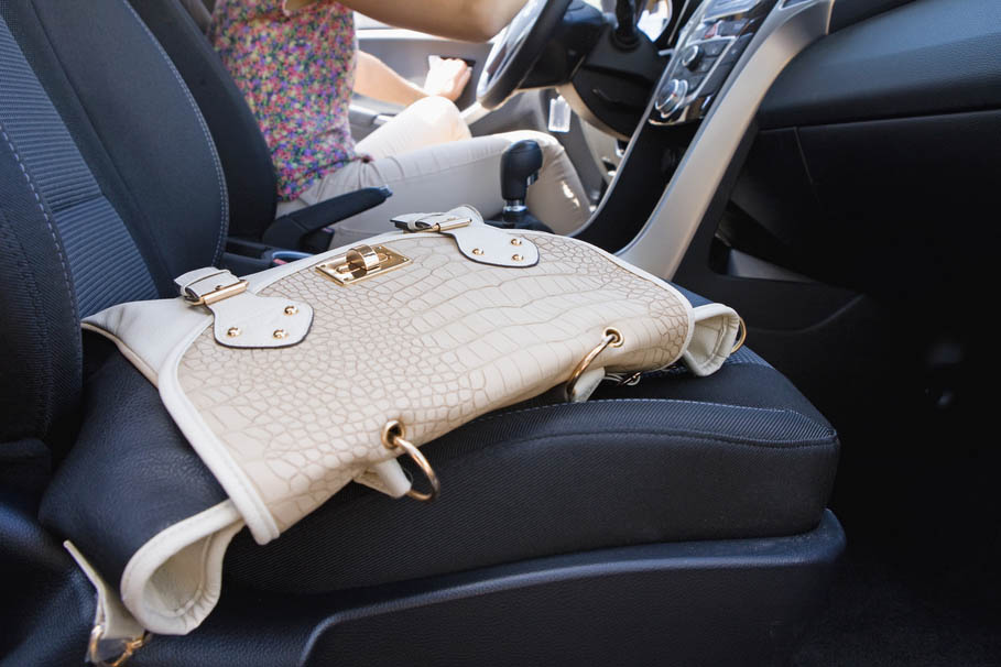 اول مكان قد ترمين حقيبتك او محفظتك فيه هو الكرسي الموجود الى جانب السائق، ولكن مع اول توقف مفاجئ ستجدينه على الارض ما قد يعرض ما في داخله للتلف، وبالرغم من انه لا توجد احزمة مخصصة لحقيبتك حاليا، يمكنك التحول الى مبتكرة وتضعين حزام الامان العادي على حقيبتك!