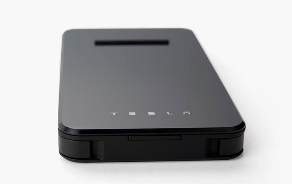 الشاحن متاح باللونين الأسود أو الأبيض، ويأتي مع كابل USB-C ومنفذ USB-A إضافي، لديه بطارية 6,000 مللي أمبير وشحن لاسلكي بقدرة 5 وات، بالإضافة إلى شعار تسلا بالطبع.