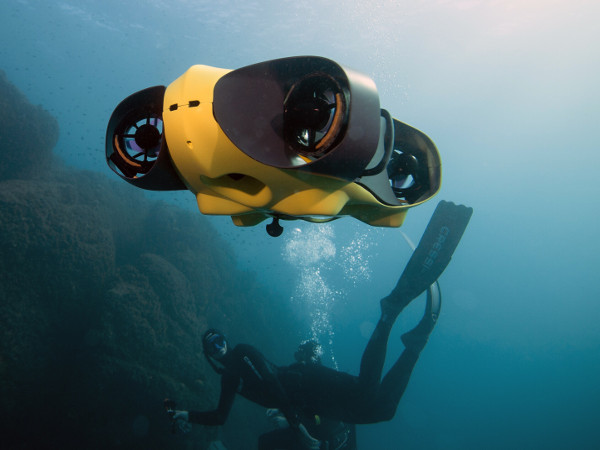 وفي حالة كنت من عشاق رياضة الغوص ستجد أن هذا الدرون هو الأفضل لك، حيث أنه قادر على القيادة الذاتية بنسبة 100% كي يتبعك تحت الماء من دون أي أسلاك حيث يمكن التحكم به عبر سوار خاص، كما يمكنك ارساله لاستطلاع المياه ومشاهدة البث الحي منه عبر هاتفك الذكي بما يصل إلى ساعة كاملة وحتى عمق 60 متر، بعد أن يتم تثبيت كاميرا جو برو أعلاه نظراً لكون الدرون البلغ سعره 3,200 دولار لا يحمل كاميرا مدمجة.