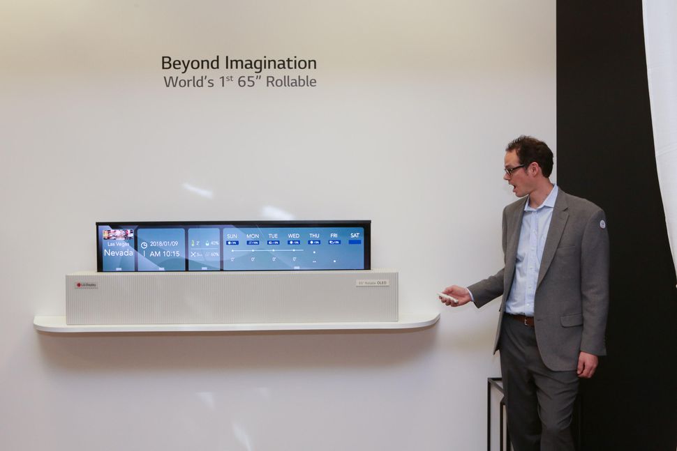 كشفت شركة ال جي عن اول تلفاز OLED قابل للطي واللف، والذي يأتي بقياس إنش ودقة 4K فائقة الوضوح.