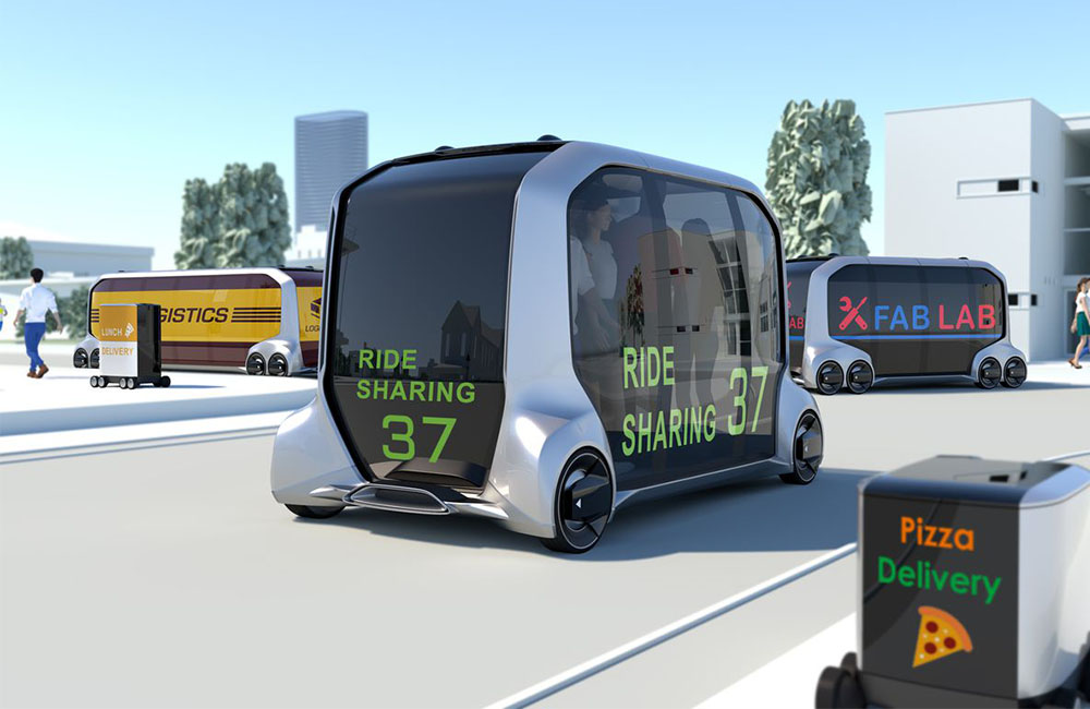 وهي سيارة ذاتية القيادة بالإمكان استخدامها في الكثير من المجالات مثل نقل أشخاص، توصيل أغذية... والـ E-Palette تشبه الحافلة الصغيرة وسيُصار إلى استعمالها في الكثير من المدن الذكية المتطورة وقد صممت للتتجاس مع عدد لا بأس به من الشركات والمطاعم المشهورة.