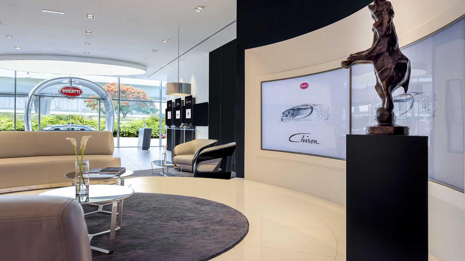 وبما أنّ إمارة دبي في الإمارات العربية المتحدة باتت محط أنظار العالم أجمع، تمّ في مايو من عام 2017 افتتاح أكبر صالة عرض لـ "بوجاتي" في العالم في هذا المكان المميز والمتطور.