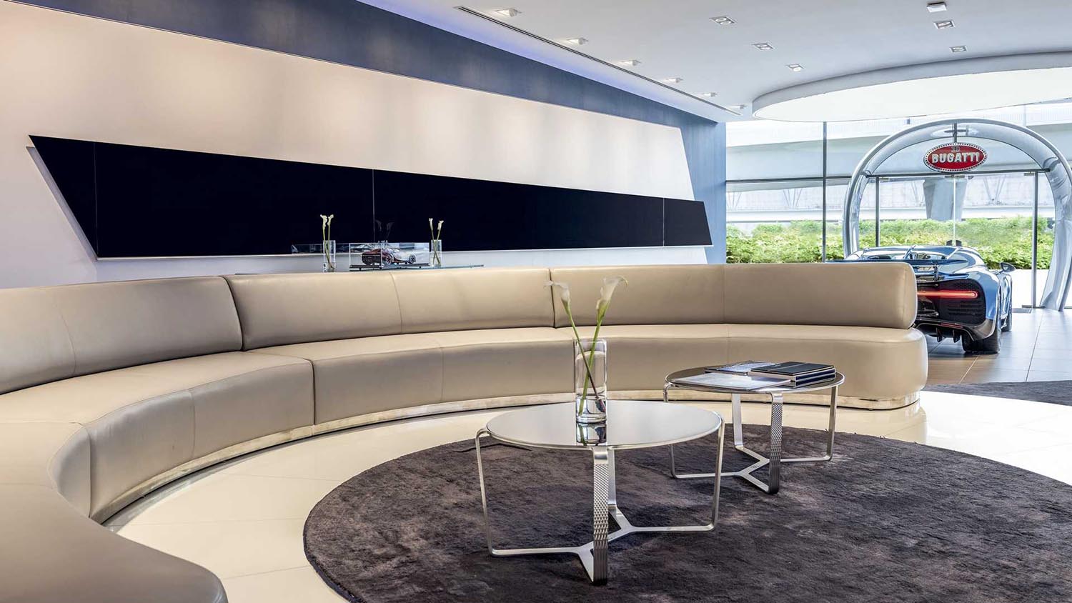 هذا المكان الجميل يسمح لأيّ شخص يريد شراء "بوجاتي" أن يختار الكثير من الخصائص التي سوف تظهر على سيارته لاحقاً كـ: اللون الخارجي ولون المقاعد، إضافة إلى عدد لا بأس به من الخيارات الأخرى.