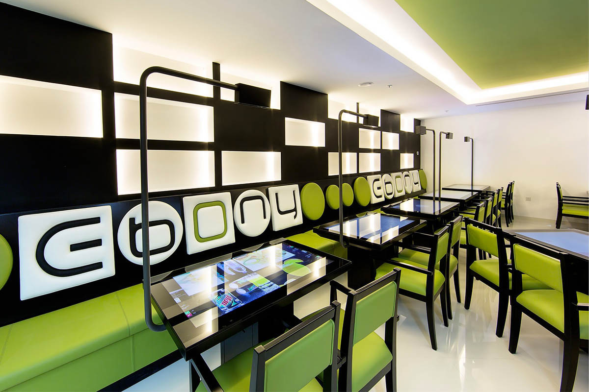 مطعم إفريقي - عربي يتميز بمحاكاته لاحدث وسائل التكنولوجية. معظم طاولات المطعم تفاعلية، مع شاشات تكنولوجية تسمح لك اختيار قوائم الطعام وتصفحها من دون الحاجة الى لائحة طعام. وبينما تنتظر طعامك، يمكنك تصفح بريدك الالكتروني أو مواقع التواصل الاجتماعي أو حتى حضور فيلم أو لعب احدى الالعاب الالكترونية.