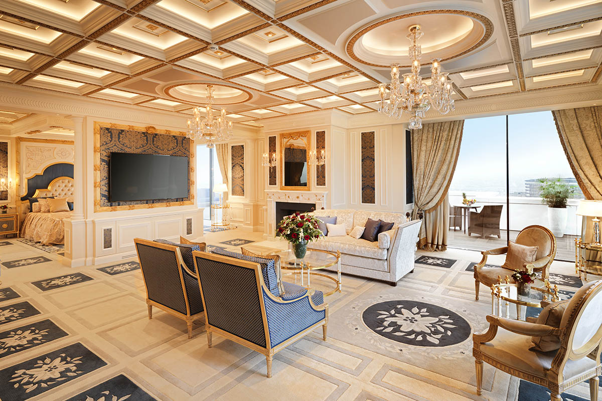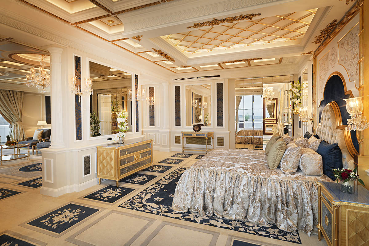 يرتقي فندق رويال ريزيدني، أتلانتس باي جياردينو إلى مستوى جديد من الفخامة والأناقة، إذ يحتوي هذا الفندق السويسري على أكبر جناح أوروبي فيه 8 غرف نوم وحمام ممتدة على مساحة 426 مترًا مربعًا.
