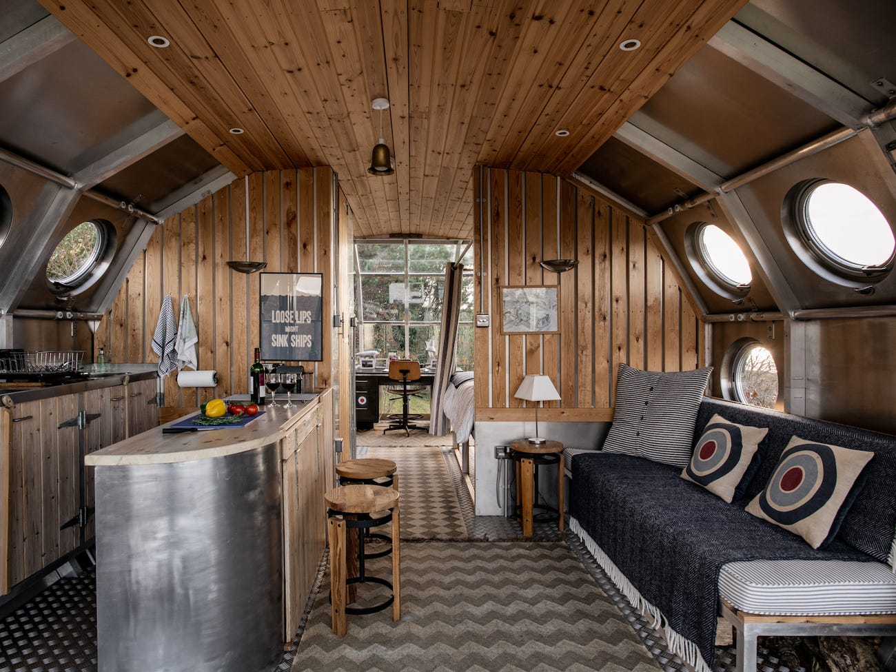 يتميز بتصميمه الداخلي المصنوع من الخشب، مما يخلق أجواء منزلية مثالية لقضاء العطلات.
